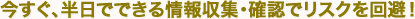 これらの情報収集は、全国どこでも半日もあれば確認が可能です。